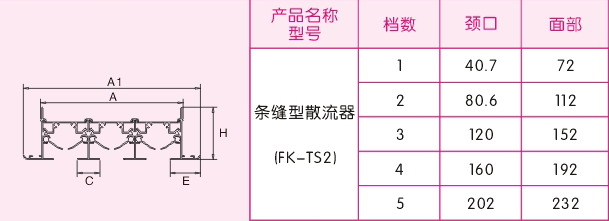 条缝型散流器也可称线槽型风口,造型设计独特,每一组槽内有两个可调叶片,可控制气流方向和大小,一般安装在侧墙或天花板上,可作出风或回风作用,可根据房间的不同构造,加工成角度,产品太长时可做分段处理,以方便运输和安装。