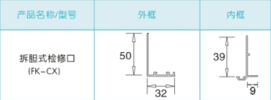 拆弹式检修口由内外两个框组合而成,内框可拆卸,用水平方向靠一边推时即可打开内框,安装于天花板上,作设备检修时的出入口。