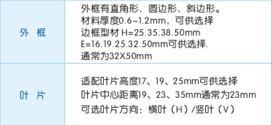 单层可调百叶可直接与风盘管配套使用,也可用于中央空调系统末端,叶片角度可在0-180度之间任意调节将叶片调成不同角度可得到不同的送风距离和不同的扩散角度,也可以配上OBD人字闸,将风量及风速控制在适当范围内,亦可配置过滤网作回风使用,在原有基础上可做成铰式单层可调百叶,或拆胆单层可调百叶,订货时请说明叶片方向。