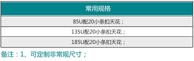 它是条扣天花的又一个新组合,为现代建筑增添新的特色。本产品是由85配小条、135配小条和185配小条三种组成,更具层次感、时尚感;