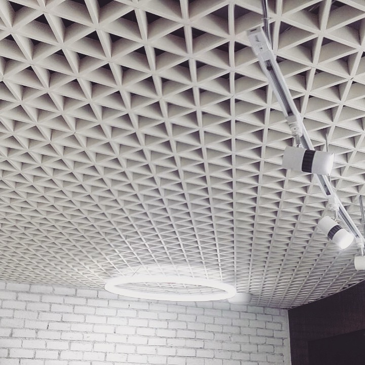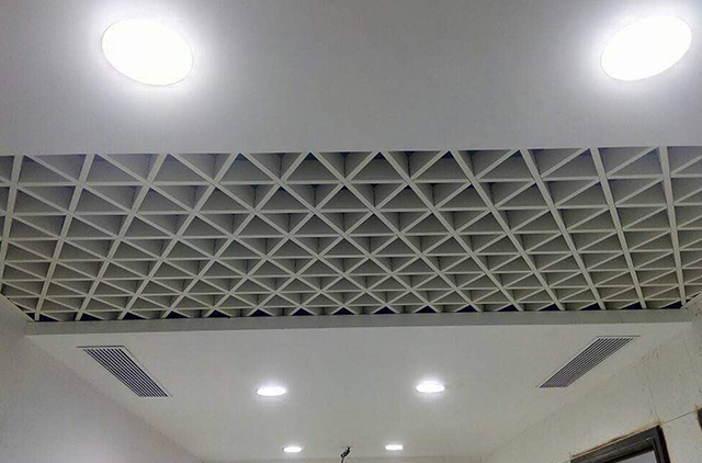 型材三角形格栅,是一种型材铝格栅产品。由一种型材衬盖,六角轴连接型材方管组合起来的铝格栅产品衬盖和六角轴,是型材挤压产品,主要根据型材方管尺寸去配合使用,型材方管有各种不同的规格,如25*50,25*75, 25*100, 40*60,40*80 ,40*100等规格的型材方管,客户可根据设计风格和三角铝格栅上层设备,如灯具,消防喷淋等去选择合适的三角铝格栅尺寸。