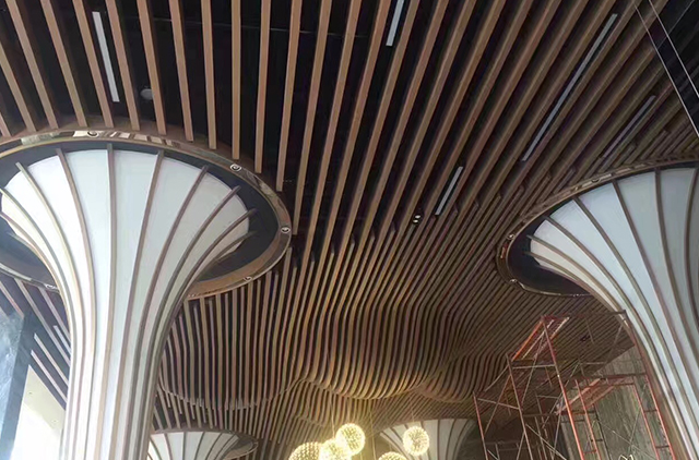 木纹铝方通吊顶是近年来颇受欢迎的吊顶天花,它打破传统的木吊顶市场。木纹铝方通吊顶是通过贴上木纹色,在通过高温将木纹色转印在铝板上,简称热转印木纹技术。装饰起来让环境更加接近大自然。别有一番风味。这是目前行业上的技术工艺,紫外线仅能透过千分之一,保质时间为20年。不仅技术好,外观精美,是市场上的工艺技术。铝方通规格:底宽一般为20-400mm,高度20-600mm,厚度0.5-1.2mm。注意:长度最长可达6米,特殊尺寸可根据具体情况定制。